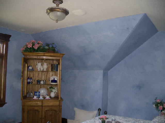 This small bedroom with unusually shaped walls and ceilings is transformed into a cozy comfortable retreat to enjoy and relax in.