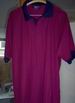 - Polyester and cotton, extra large golf shirt with navy blue collar and sleeve caps made by Canada Sportswear